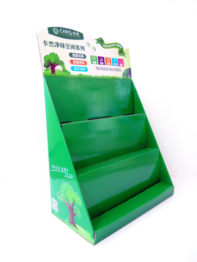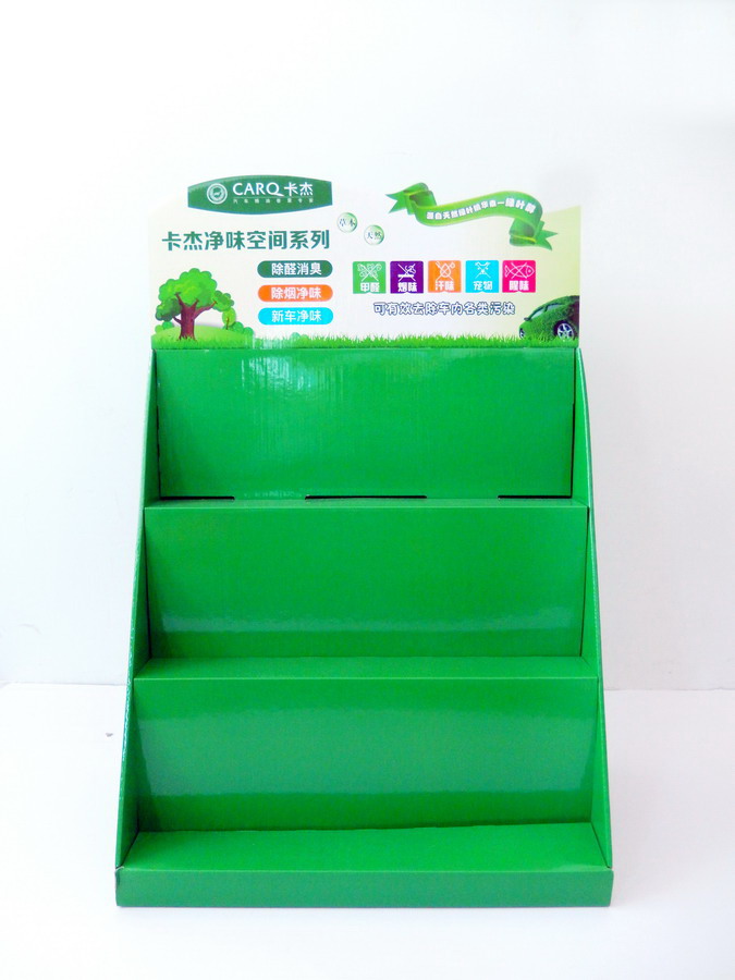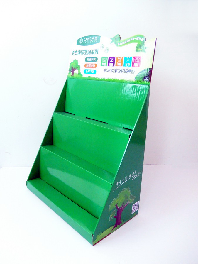 此款展架是用来放净化空气产品的纸座台架/纸座台/PDQ/座台箱/纸盒。由加强型瓦楞纸板制做而成,做工一流。配合精美的画面,鲜艳的颜色,即漂亮又可以达到广告的作用。质量好的同时相对传统展架价格方面也有优势。可按要求折平或立体出货。组装简单快捷,节省时间,用后方便丢弃或妥善保管可反复多次使用。是商超、卖场、小店等广告促销展示的首选。